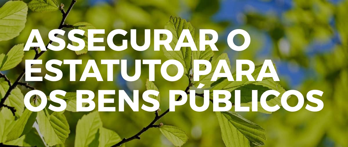 Assegurar o Estatuto para os Bens Públicos, a nível nacional e europeu, identificando e categorizando todos os bens de que depende a população em geral e o interesse comum da sociedade - como são exemplo a água potável, as grandes infraestruturas e as grandes empresas de transporte que são a base do sistema de mobilidade, os correios, a REN ou a Caixa Geral de Depósitos - e fixando os princípios de uma gestão dos bens públicos, com imposição legal de limites explícitos à sua mercantilização e/ou à sua privatização. De acordo com estes limites, os setores-chave identificados devem ser preservados ou revertidos para o Estado, suspendendo as privatizações, as concessões e as parcerias público-privadas que os ultrapassem, colocando-os ao serviço da comunidade e do desenvolvimento económico, ecológico e solidário.