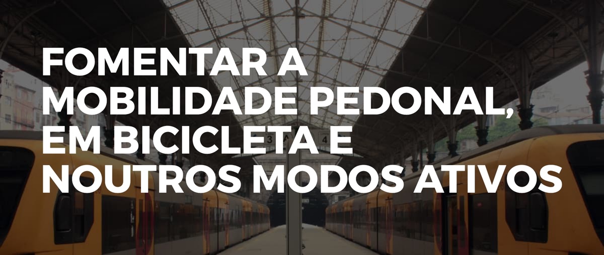 Fomentar a mobilidade pedonal, em bicicleta e noutros modos ativos, revitalizando os centros urbanos e apostando na sua habitabilidade e espaço público; eliminação de barreiras tarifárias, de informação e físicas entre todos os modos; concretizar a rede ciclável nacional, regional, intermunicipal e urbana interligada, permitindo a deslocação útil nas atividades diárias para o trabalho, família e lazer dentro de e entre os municípios; alargando os incentivos financeiros como a redução do IVA para todos os veículos de modos ativos ou suaves e a inclusão das despesas com a sua reparação no IRS; criando condições e incentivos nas escolas e nas empresas para que o acesso assim seja feito; prevendo investimento para a implementação da Estratégia Nacional para a Mobilidade Ativa (ENMA 2020-2030).