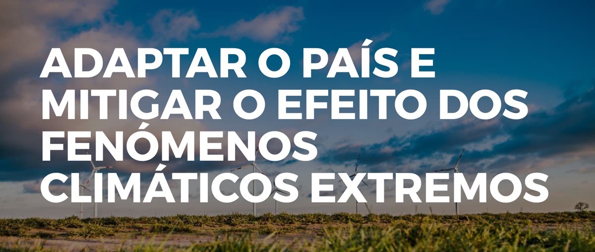 Adaptar o país e mitigar o efeito dos fenómenos climáticos extremos, definindo um Plano de Infraestruturas Críticas, mapeando os locais onde estes fenómenos poderão ter maior impacto; apoiando, através dos subsídios adequados, soluções baseadas na natureza que através da promoção, reabilitação e manutenção dos ecossistemas, habitats e infraestruturas verdes, aumentem a resistência e resiliência do território; reforçando a Proteção Civil.