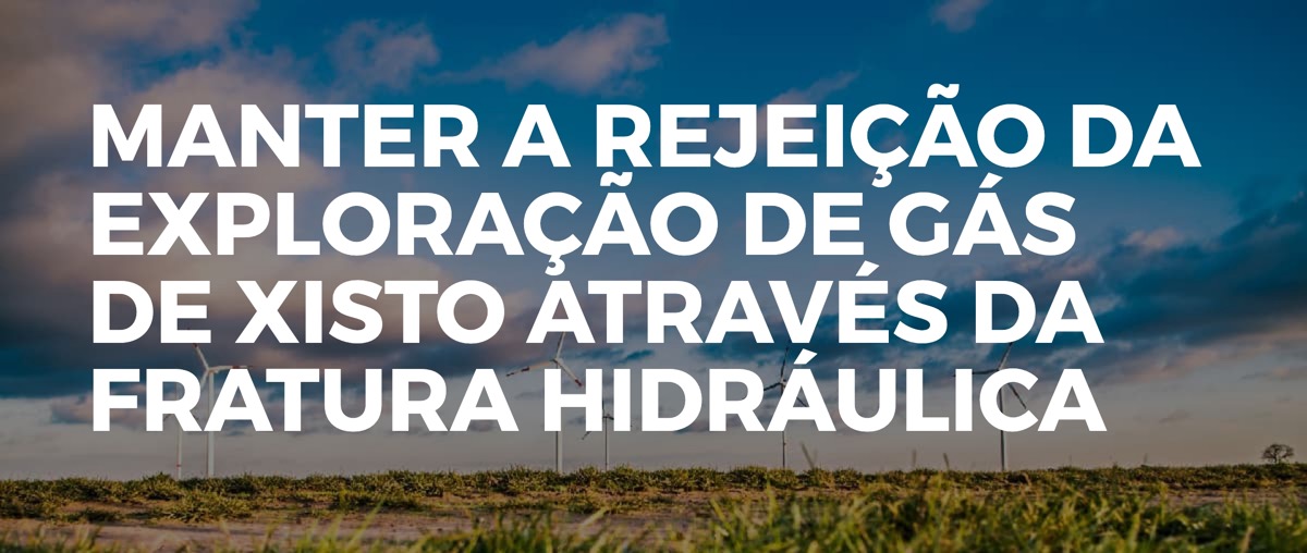 Manter a rejeição da exploração de gás de xisto através da fratura hidráulica, mantendo o território nacional isento do risco geológico associado a este modo de extração.