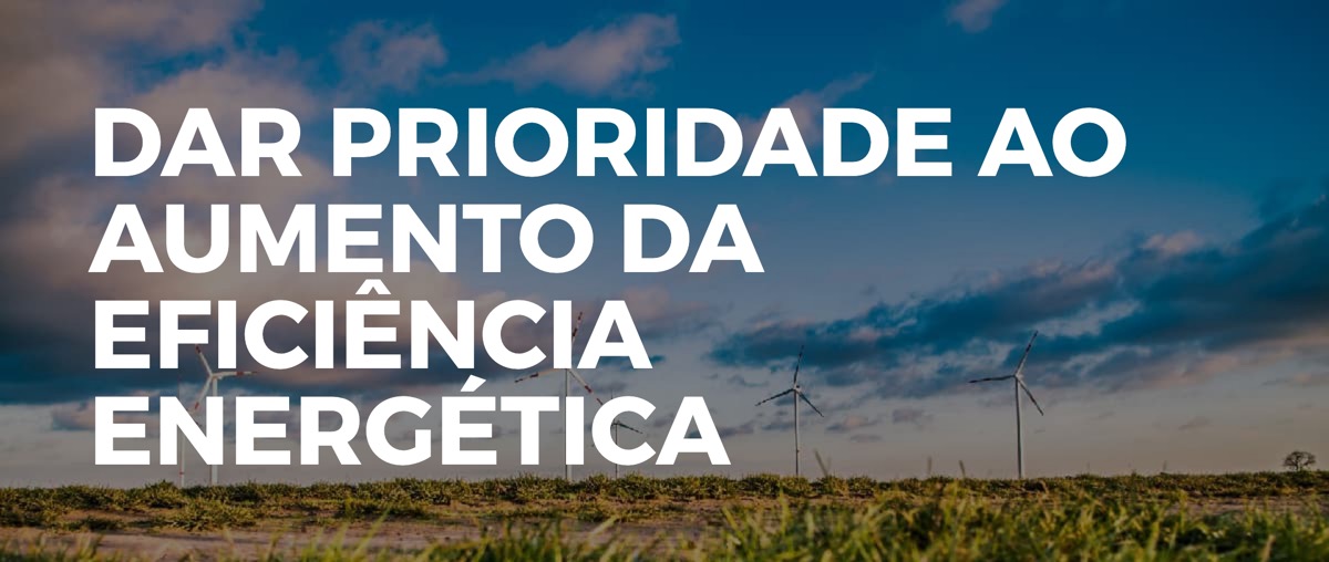 Dar prioridade ao aumento da eficiência energética, assumindo uma meta de 35% até 2030, enquadrada num renovado Plano Nacional para a Eficiência Energética (PNAEE) e adotando uma metodologia baseada em indicadores de intensidade energética. O aumento de eficiência irá abranger todos os setores de atividade, incluindo a indústria, os transportes, as habitações, os equipamentos, entre outros.