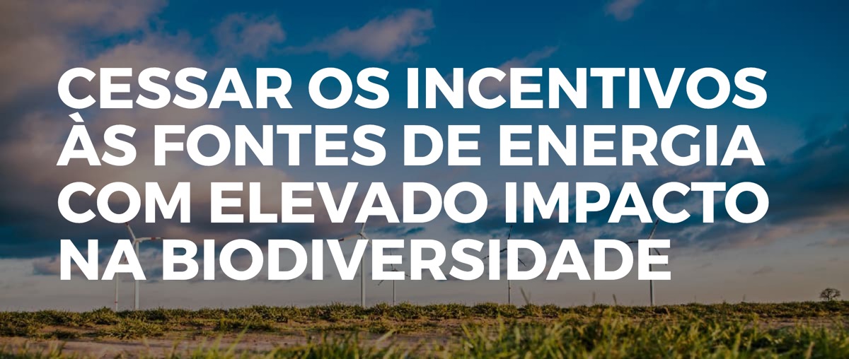 Cessar os incentivos às fontes de energia com elevado impacto na biodiversidade, cancelando a atribuição de subsídios à construção de novas barragens ou infraestruturas associadas.