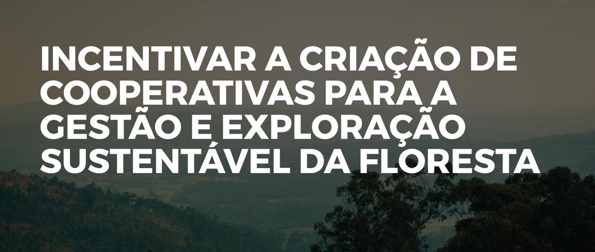 Incentivar a criação de cooperativas para a gestão e exploração sustentável da floresta nas áreas que integram o banco de terras do Estado, potenciando economias de escala e respeitando o ordenamento previsto nas políticas florestais revistas.