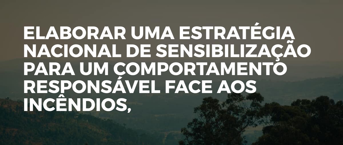 Elaborar uma estratégia nacional de sensibilização para um comportamento responsável face aos incêndios, com metas concretas para a redução do número de ignições involuntárias, informando quanto aos comportamentos adequados em caso de incêndio.