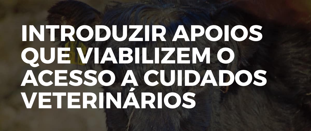 Introduzir apoios que viabilizem o acesso a cuidados veterinários aos animais de companhia adotados por pessoas ou famílias carenciadas, através de programas de cooperação e sensibilização no acesso de todas as famílias a cuidados veterinários.