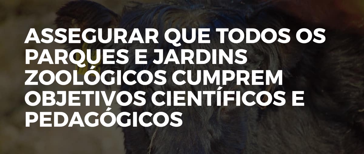 Assegurar que todos os parques e jardins zoológicos cumprem objetivos científicos e pedagógicos, lançando uma comissão específica, no âmbito do Conselho Nacional para os Animais e um sistema de monitorização dos parques e jardins zoológicos que acompanhe a implementação da legislação comunitária respetiva.