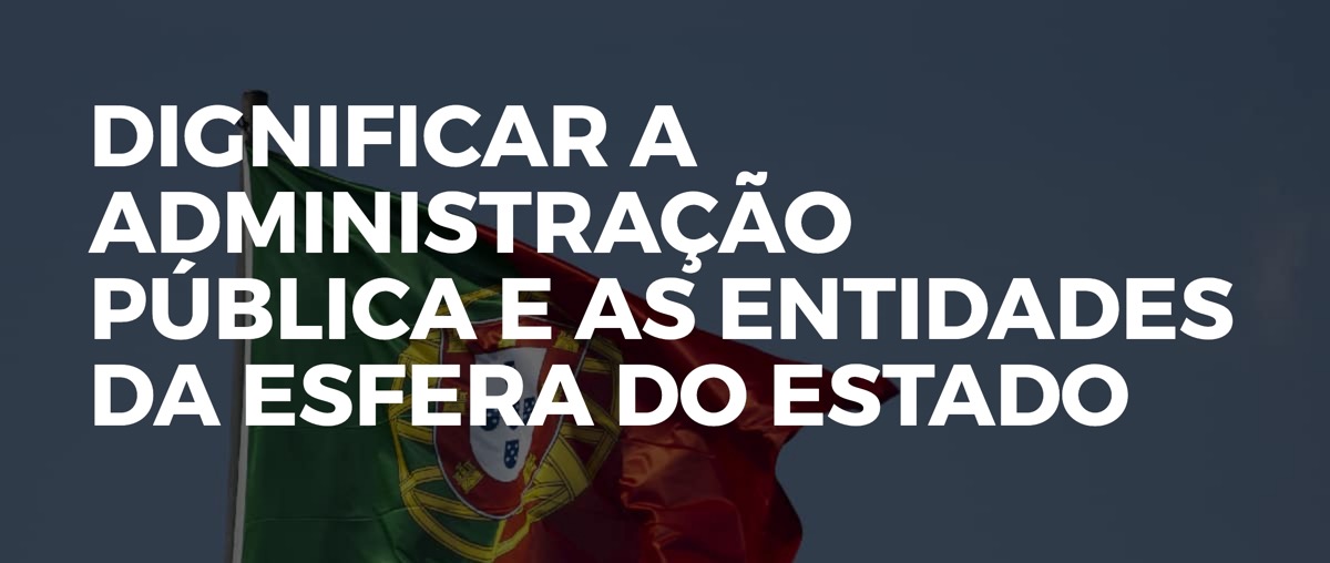 Dignificar a Administração Pública e as entidades da esfera do Estado, considerando a contagem integral do tempo de serviço dos professores e de todos os outros trabalhadores das carreiras e corpos especiais da administração pública, com uma regularização total a dois anos ou com outro prazo resultante do diálogo social; melhorando as condições de trabalho, de instalações, de recursos e de formação dos profissionais do Estado; promovendo uma revisão negociada da Lei Geral do Trabalho em Funções Públicas (Lei 35/2014 de 20 de Junho); combatendo a precariedade no Estado local e central; apostando num sistema de avaliação de trabalhadores que promova a motivação e a cooperação.