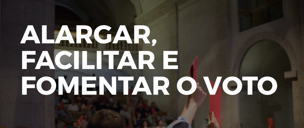 Alargar, facilitar e fomentar o voto, permitindo o voto a partir dos 16 anos; permitindo o voto em referendo de pessoas emigradas fora de Portugal (incluindo as com dupla nacionalidade); permitindo a participação política e o voto dos imigrantes em Portugal; possibilitando a votação por correspondência nas eleições europeias e presidenciais; continuando a testar a possibilidade de voto eletrónico; alargando as possibilidades de voto em mobilidade e antecipado; garantindo condições de acessibilidade de informação, física e adaptadas a todos os cidadãos; permitindo a escolha entre o círculo de emigração ou o círculo de origem para residentes no estrangeiro; atualizando os cadernos eleitorais, retirando os eleitores fantasma, para que as eleições melhor reflitam a realidade democrática do país e das regiões.