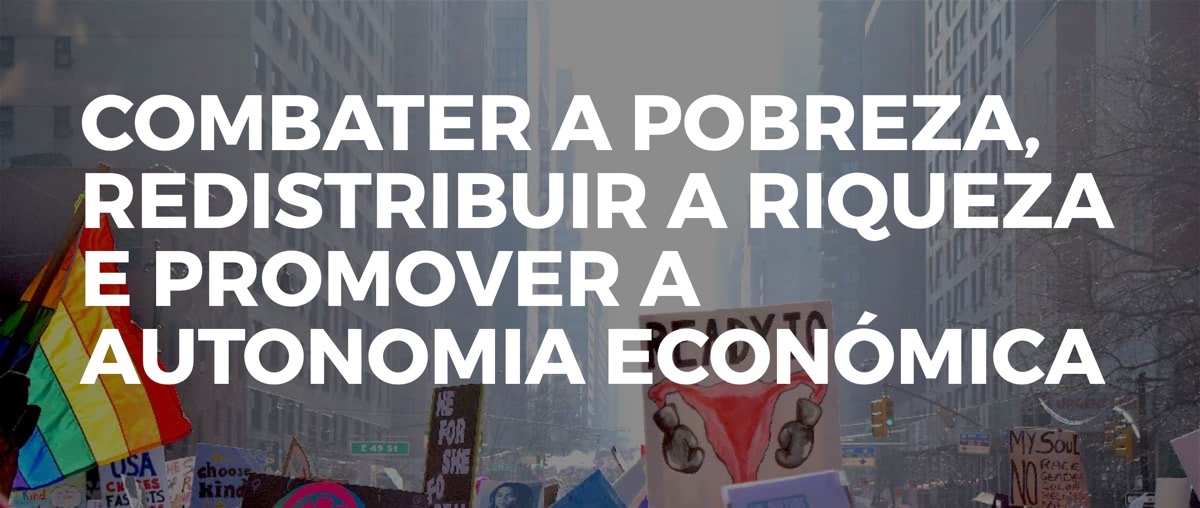 Combater a pobreza, redistribuir a riqueza e promover a autonomia económica, rejeitando o paradigma de crescimento económico vigente em favor de um paradigma de Desenvolvimento Ecológico e Solidário; implementando um programa nacional de combate à pobreza focado nas crianças e jovens; garantindo os provimentos básicos de água, gás e eletricidade através do abastecimento gratuito de quantitativos mínimos; libertando orçamento para pôr em marcha a Estratégia Nacional para as pessoas em situação de sem-abrigo; prestando apoio integrado ao nível da habitação, do emprego e da formação profissional; garantindo apoio estatal através de medidas de proteção financeira e social a famílias em situação de necessidade com crianças menores de forma direta, subsidiando o acesso à habitação, por exemplo.