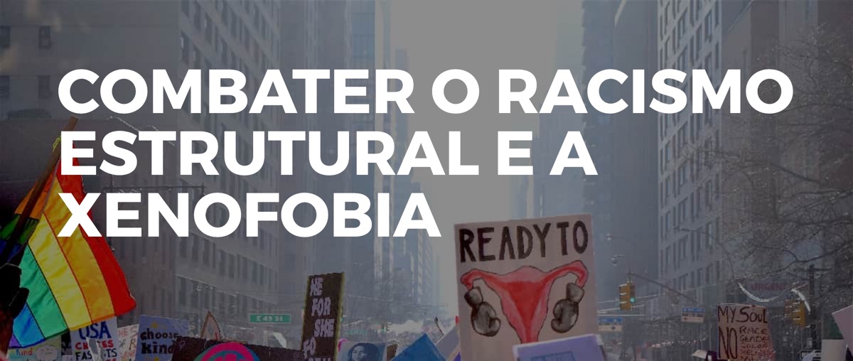 Combater o racismo estrutural e a xenofobia, criminalizando o racismo, através das alterações necessárias à Lei n.º 93/2017, que proíbe as discriminações com base em raça, cor, nacionalidade ou origem étnica, punindo-as, atualmente, apenas como contraordenação, que pouco ou nada inibe quem as pratica; promovendo campanhas nacionais antirracistas; revendo os currículos escolares para que não reproduzam uma versão acrítica da História de Portugal, baseada numa mitologia colonial que não reconhece as violências perpetradas sobre outros povos e culturas, e estimulando o pensamento crítico sobre o passado colonial português e europeu; instituindo formação obrigatória antirracista aos funcionários das instituições públicas, incluindo forças de segurança, serviços públicos e de saúde, aproveitando o conhecimento científico da psicologia e das ciências sociais