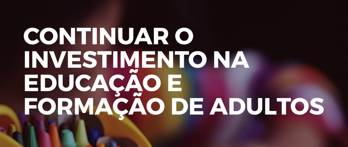 Continuar o investimento na educação e formação de adultos, generalizando a perceção de que a aprendizagem se realiza ao longo da vida, promovendo quer a educação formal - nomeadamente a formação profissional em contexto de trabalho - quer a aprendizagem não formal e informal em todas as idades, incluindo as Universidades Sénior, tanto em meio urbano como rural . Uma sociedade pelo desenvolvimento sustentável revê-se numa lógica de educação permanente..