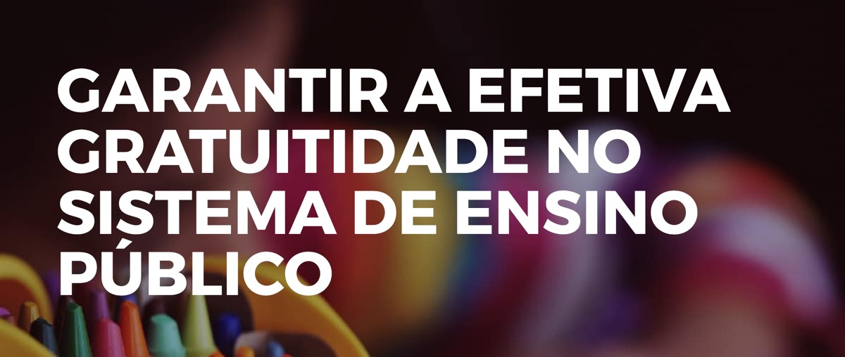Garantir a efetiva gratuitidade no sistema de ensino público, como ferramenta fundamental do desenvolvimento, da coesão social e da justiça.
