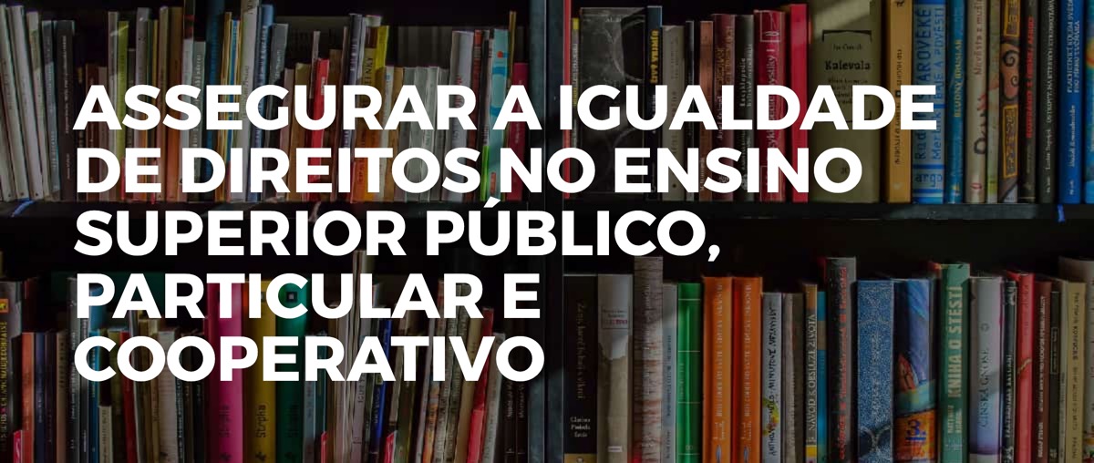 Assegurar a igualdade de direitos no ensino superior público, particular e cooperativo, através da adoção pelas instituições de ensino particular e cooperativo dos estatutos da carreira docente, garantindo a democracia interna e a liberdade de ensino e investigação e reforçando as garantias de representação sindical nestas instituições.
