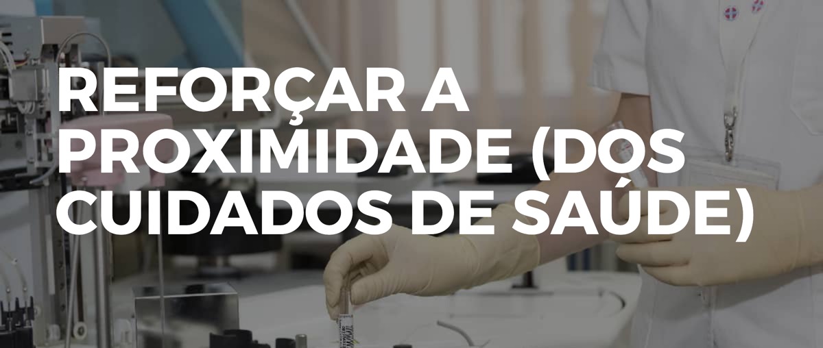 Reforçar a proximidade, garantindo que todos têm médico e enfermeiro de família e que estes se encontram integrados em equipas com assistentes operacionais, assistentes sociais e pessoal administrativo (assistentes técnicos); garantindo que o número de utentes de cada médico de família permite um acompanhamento efetivo (reduzir o número de utentes para menos de 1500 utentes por médico); requalificando os centros de saúde; aumentando a disponibilidade de cuidados continuados (de convalescença, recuperação e reintegração de doentes crónicos e pessoas em situação de dependência) no próprio domicílio ou nas zonas de residência da família; garantindo um melhor atendimento global aos doentes oncológicos através de uma rede alargada com centros oncológicos em todas as regiões; garantindo a presença de pessoal com formação em língua gestual portuguesa, assim como uma rede de tradutores rapidamente ativada para dar resposta às comunidades emigrantes que não falam português.